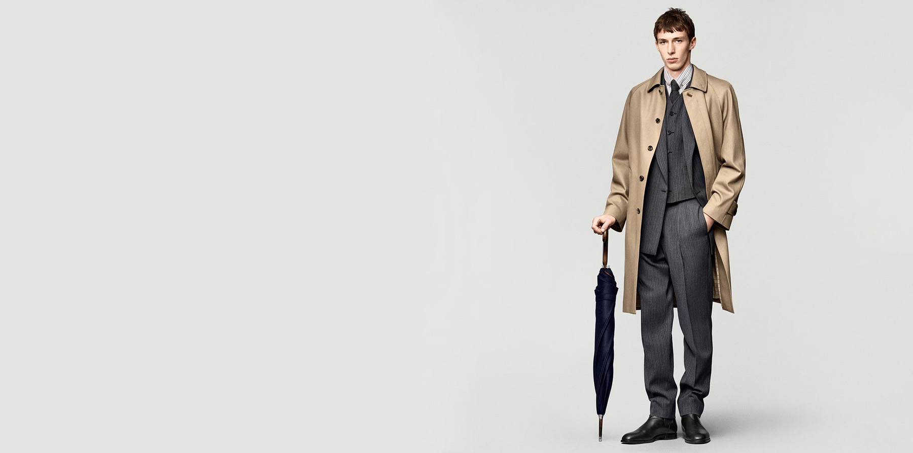 Men's Extra-Long Double-Breasted Trench Coat Class...