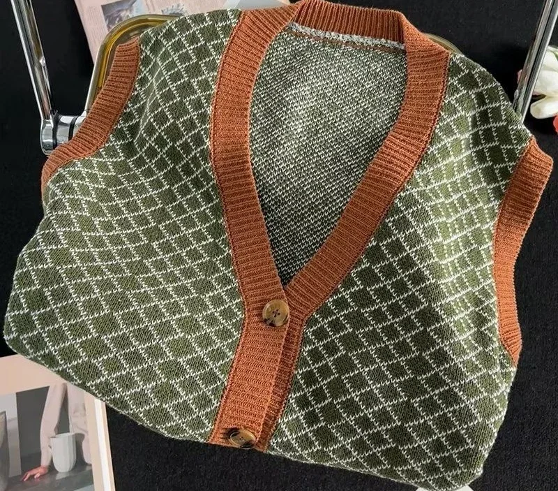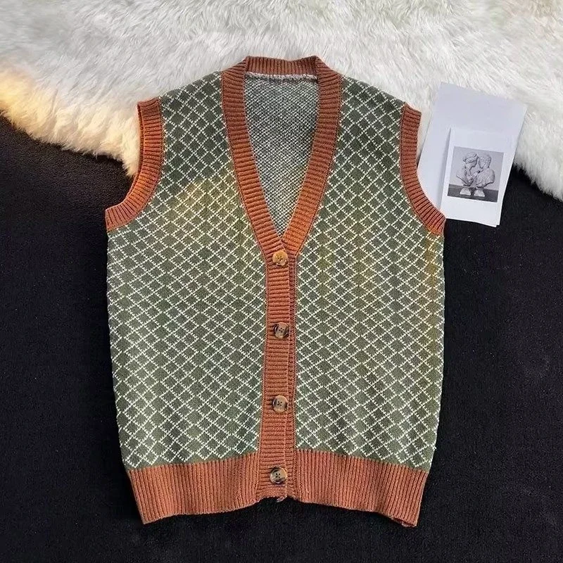 Men's Trendy Retro Knitted Cardigan Vest V-Neck Versatile Waistcoat Knitwear