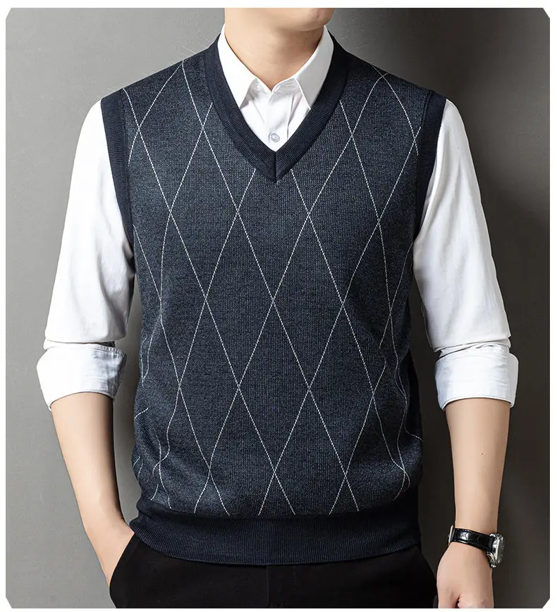 Applicable Season:Spring,Autumn Craft of Weaving:Knit Applicable Scene:Daily Material:Polyester,Wool Color:Coppery,Navy-blue Size:L-3XL Collar:V-Neck Style:Casual Closure Type:Single Breasted Gender:Men..