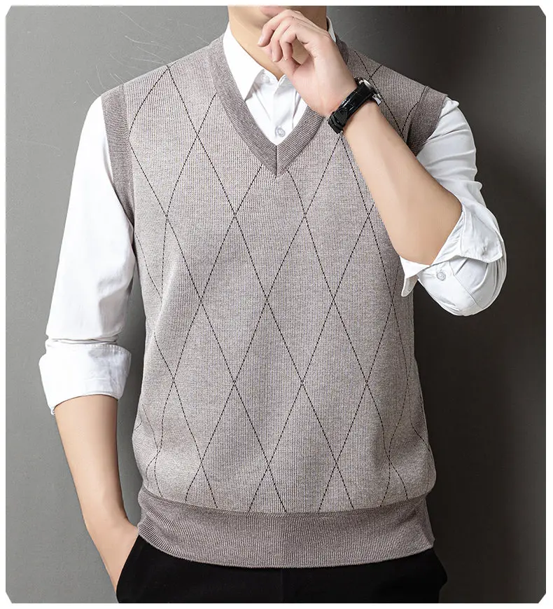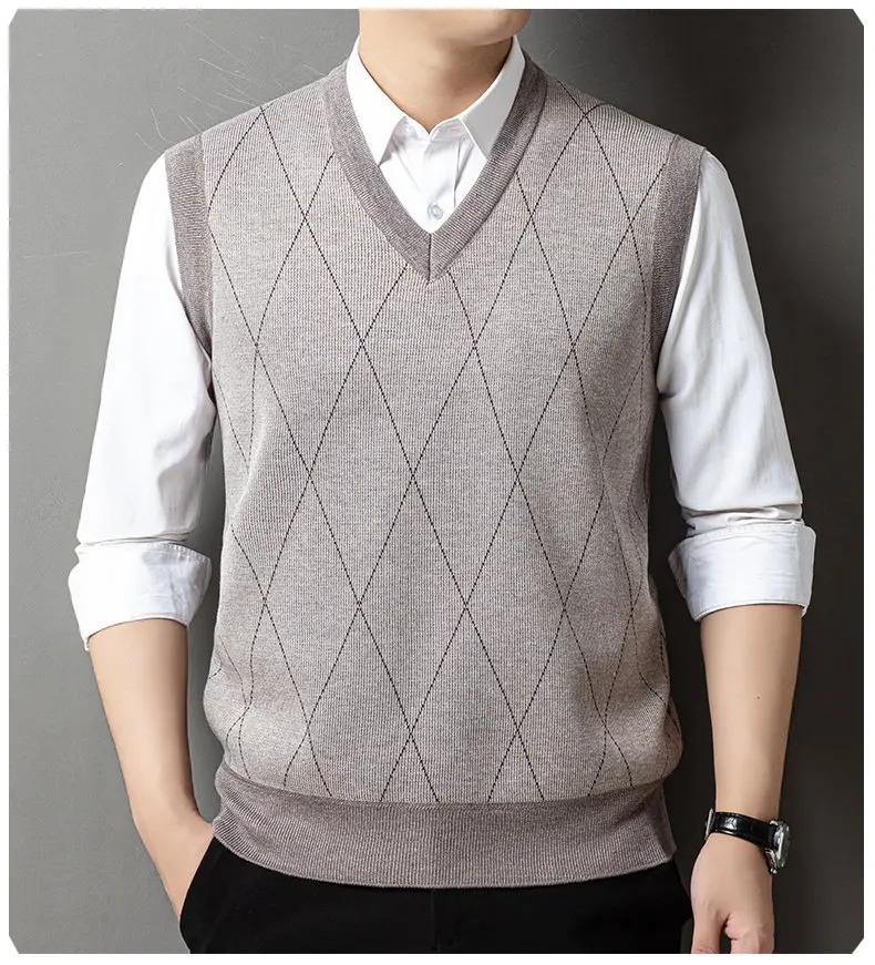 Men's Sleeveless V-Neck Knit Sweater Vest Button-Front Cardigan