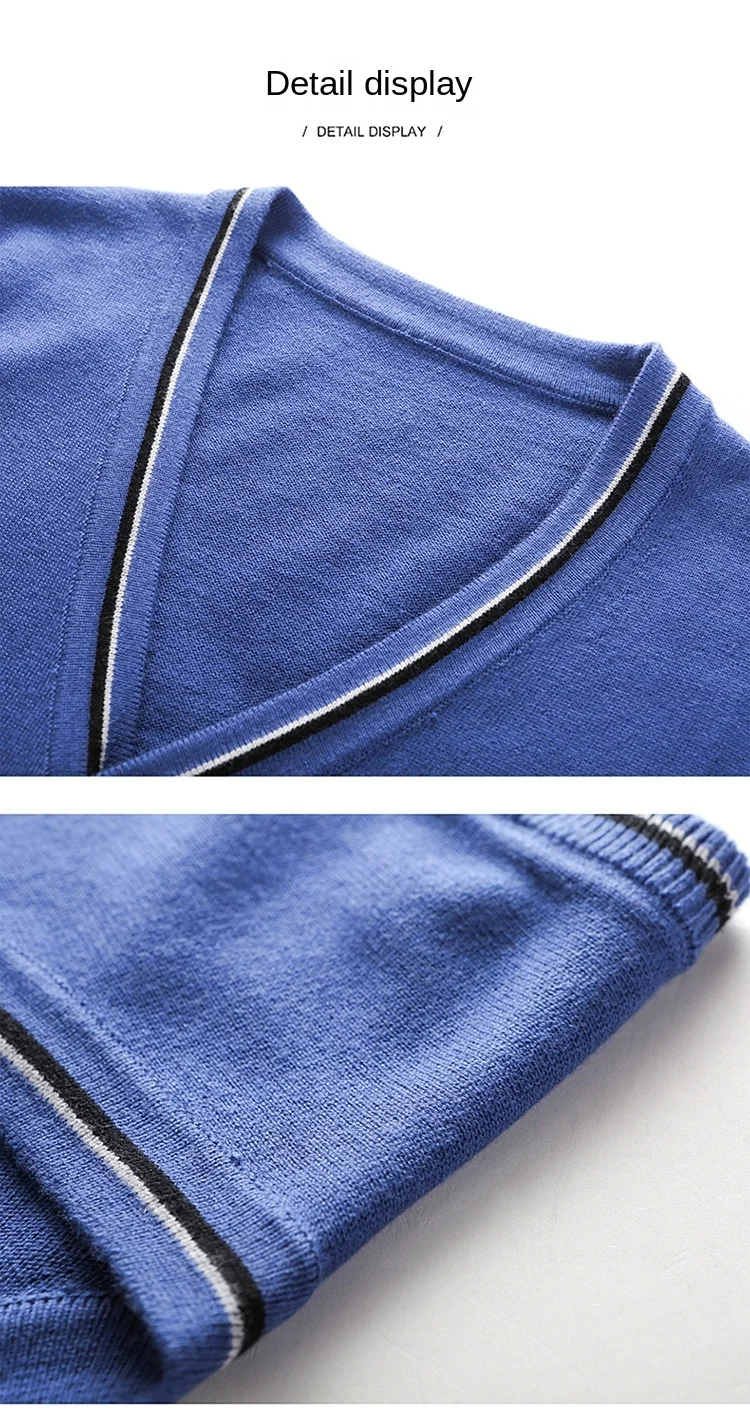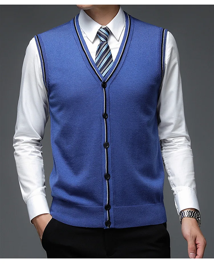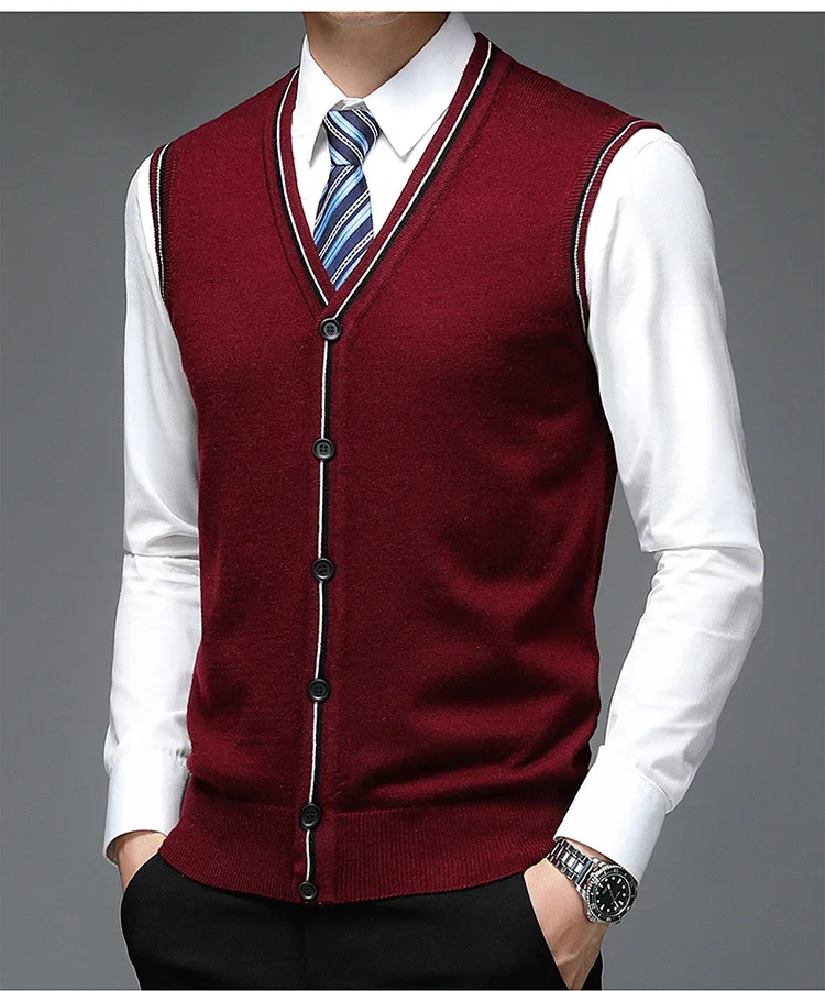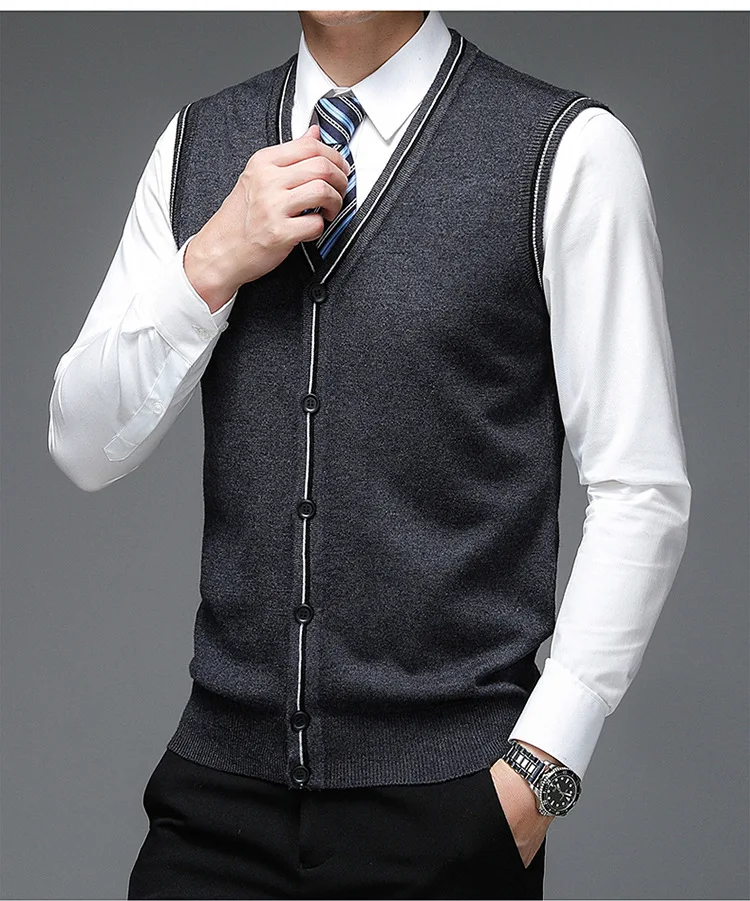 Men's Solid V-Neck Wool Cardigan Knit Vest Trendy Sleeveless Casual Sweater