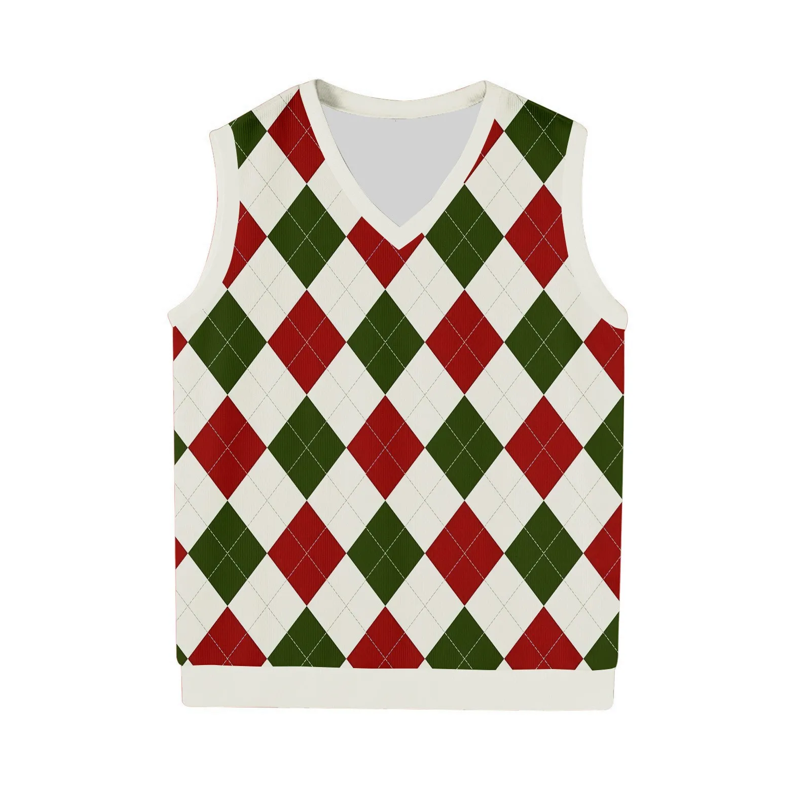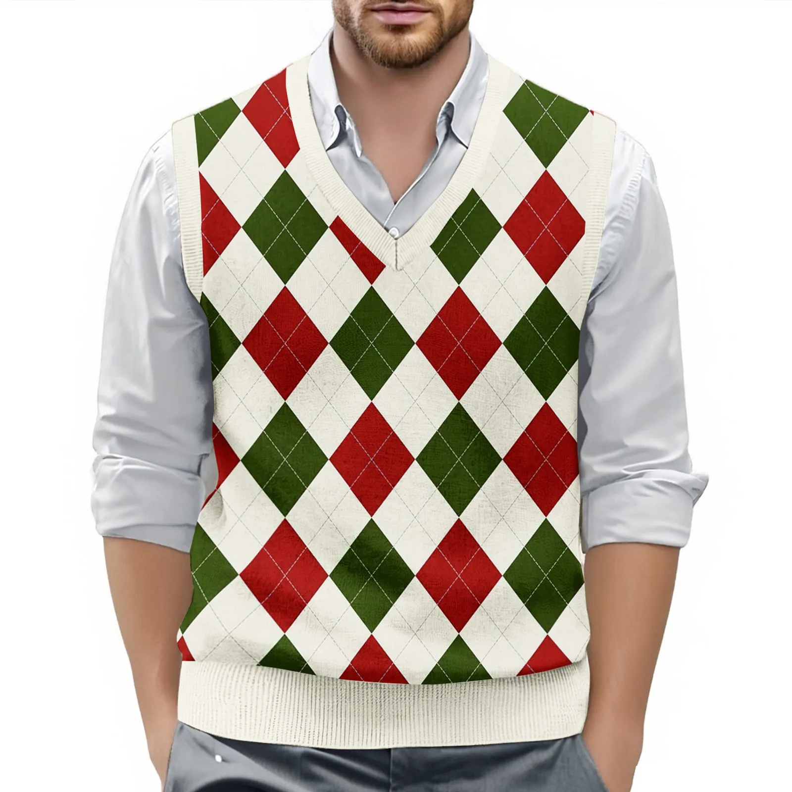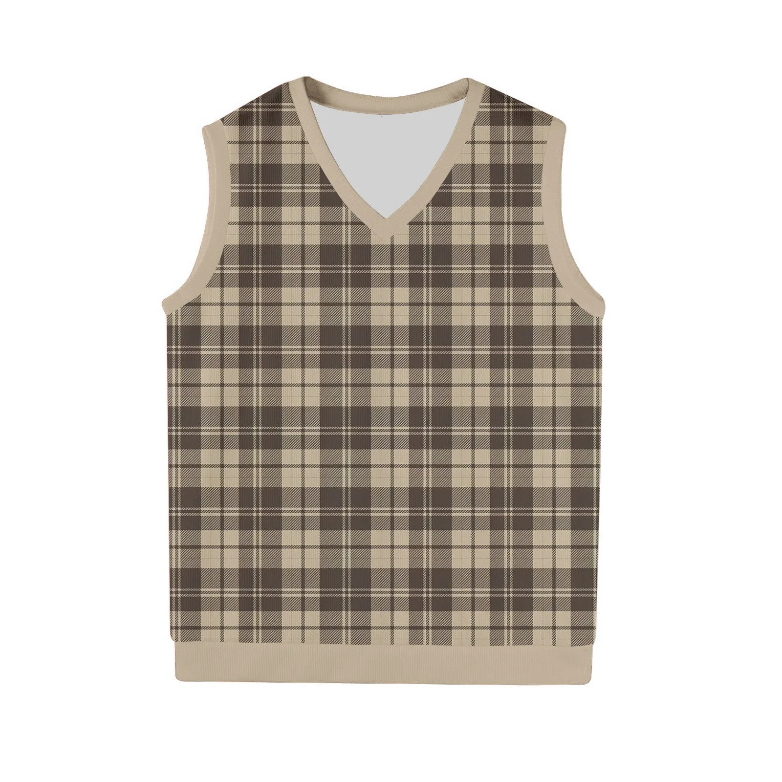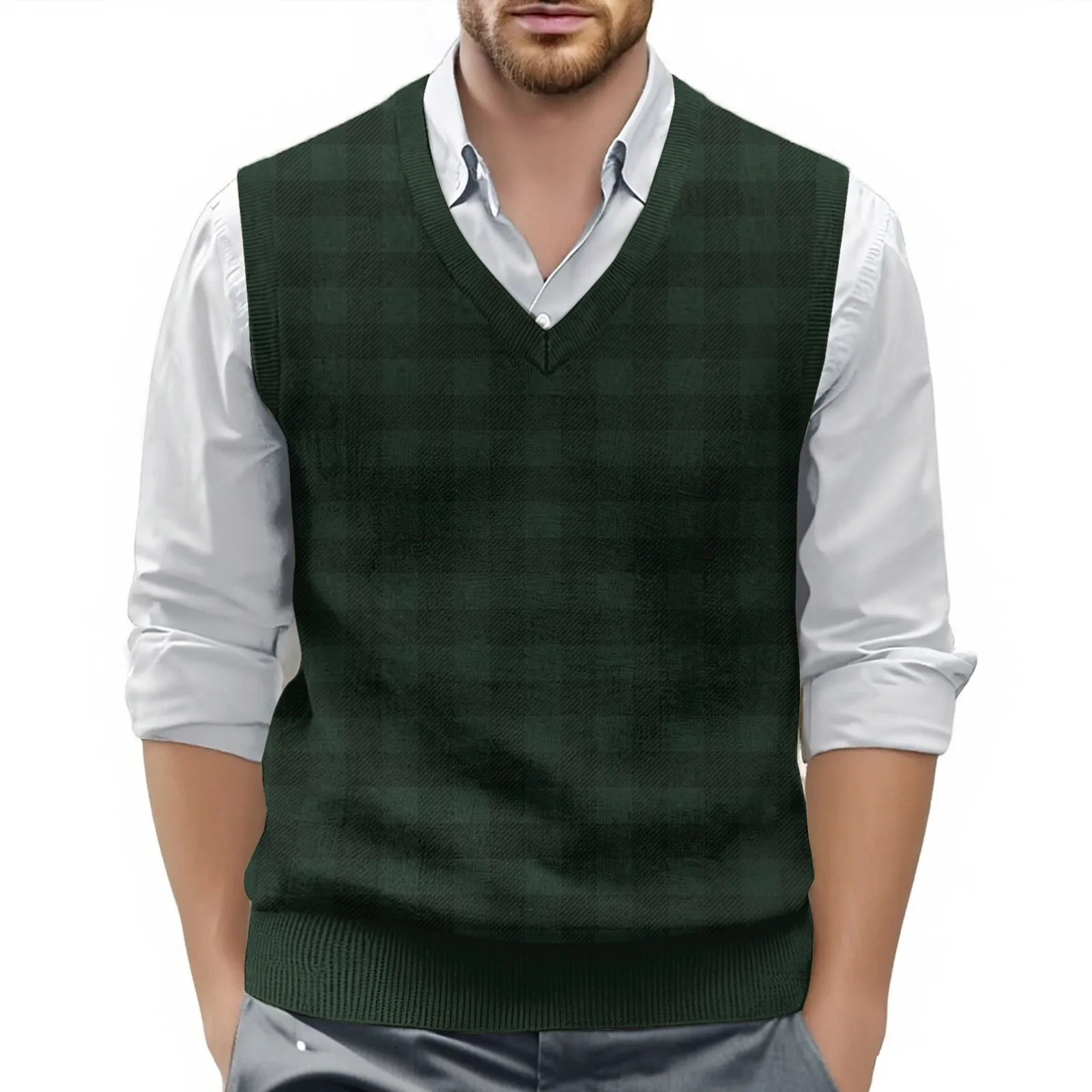 Men's British Style Checkered Knit Vest V-Neck Sleeveless Pullover Waistcoat