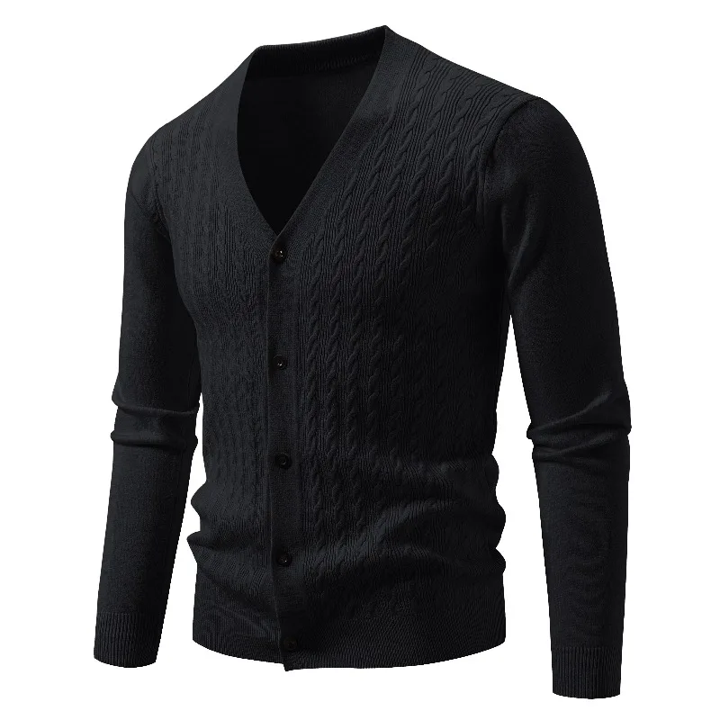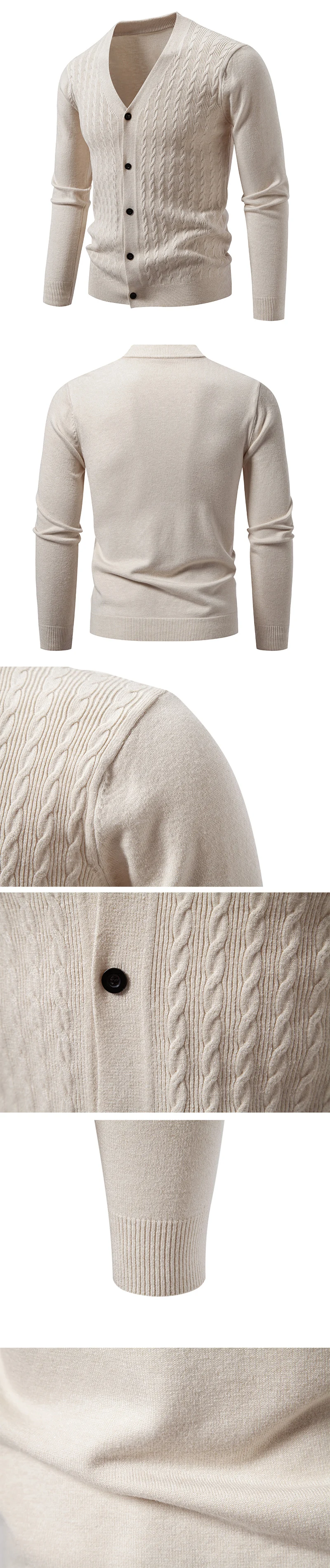 Men's Long Sleeve Classic V-Neck Button-Front Knitted Cardigan Sweater
