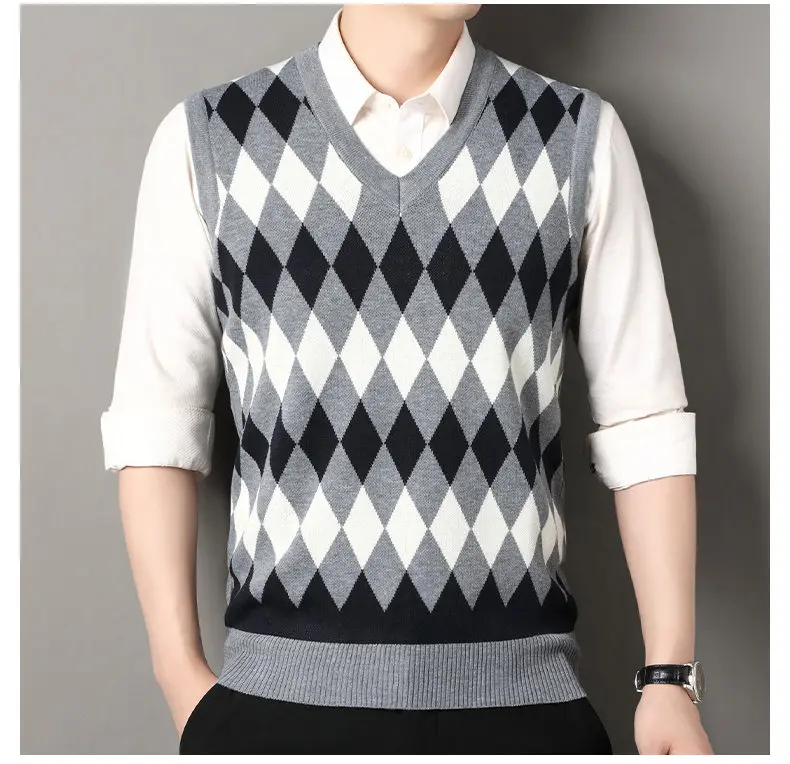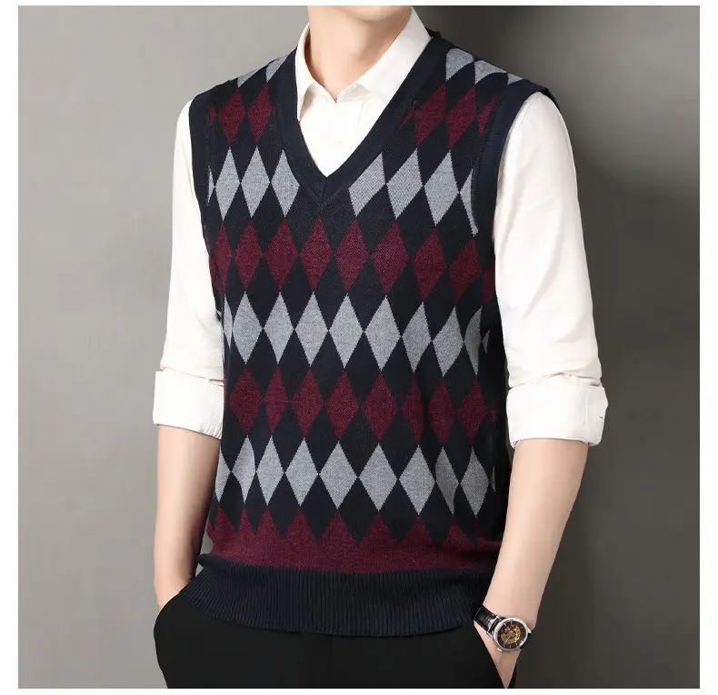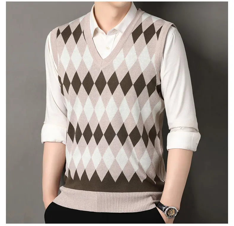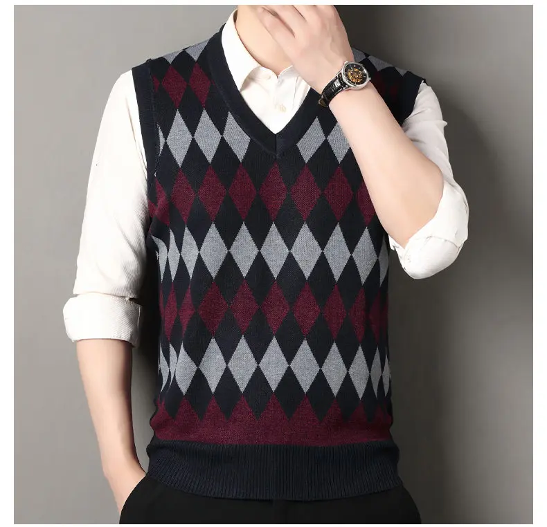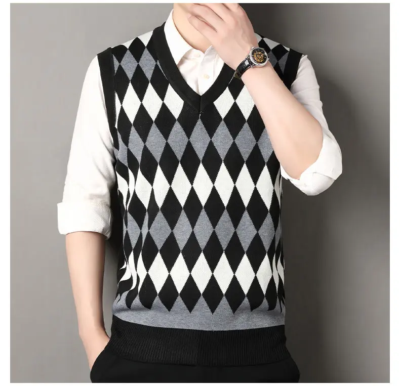 Men's V-Neck Argyle Knit Vest Casual Waistcoat Top