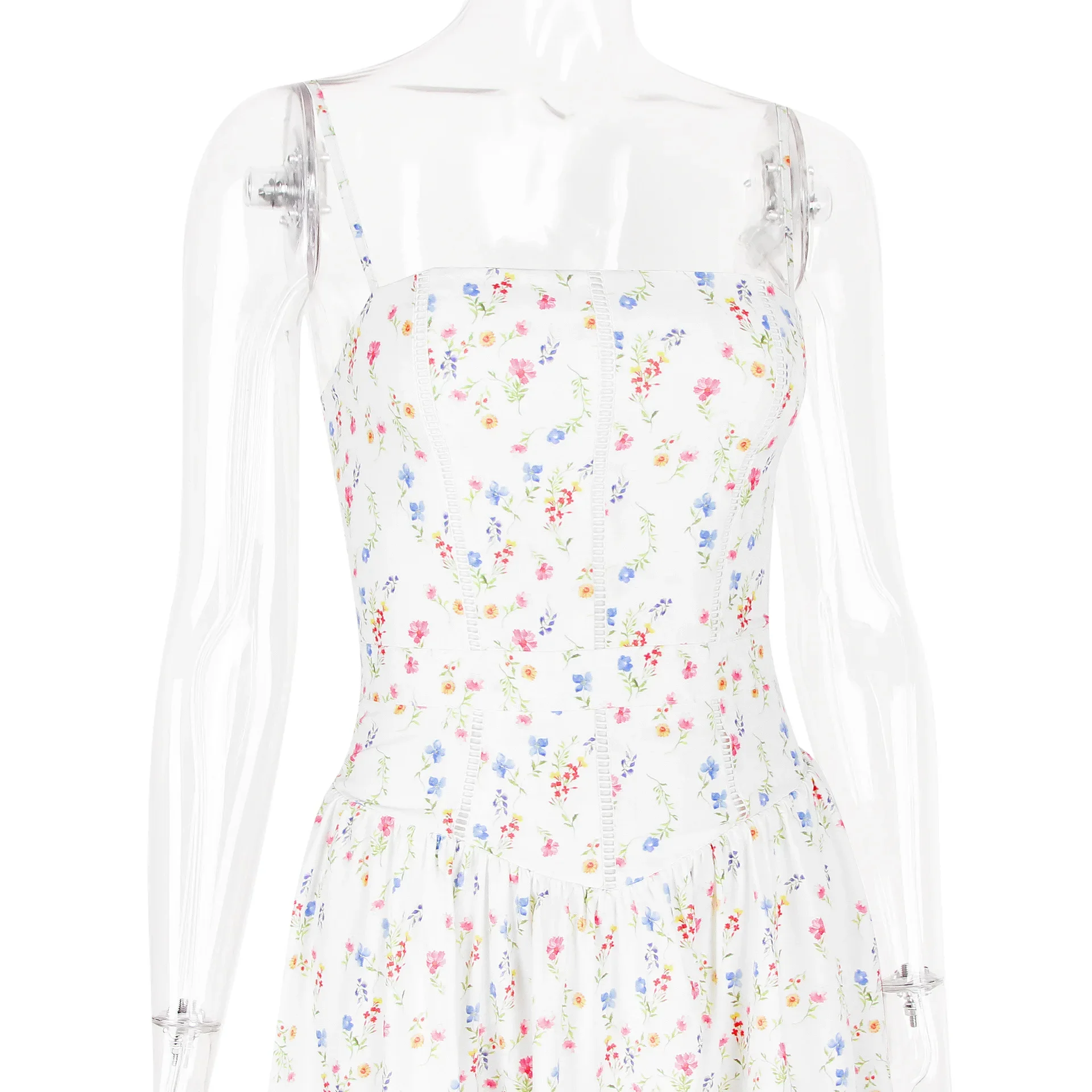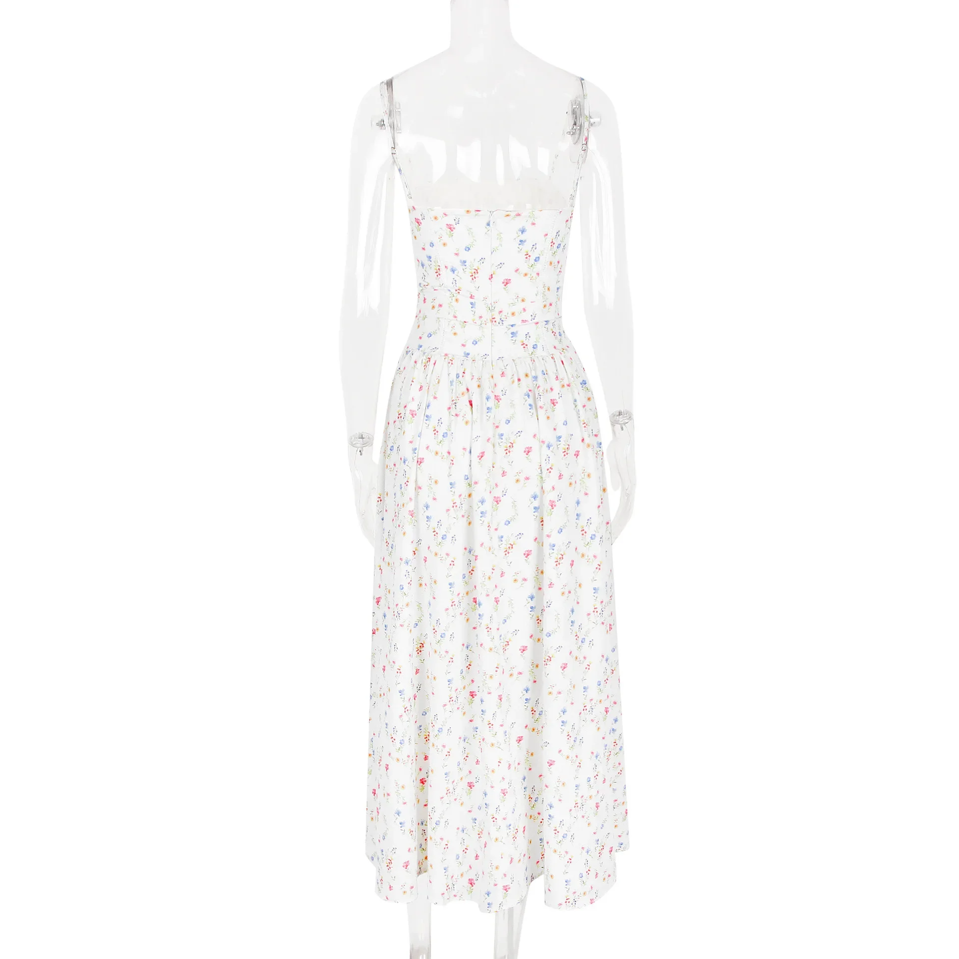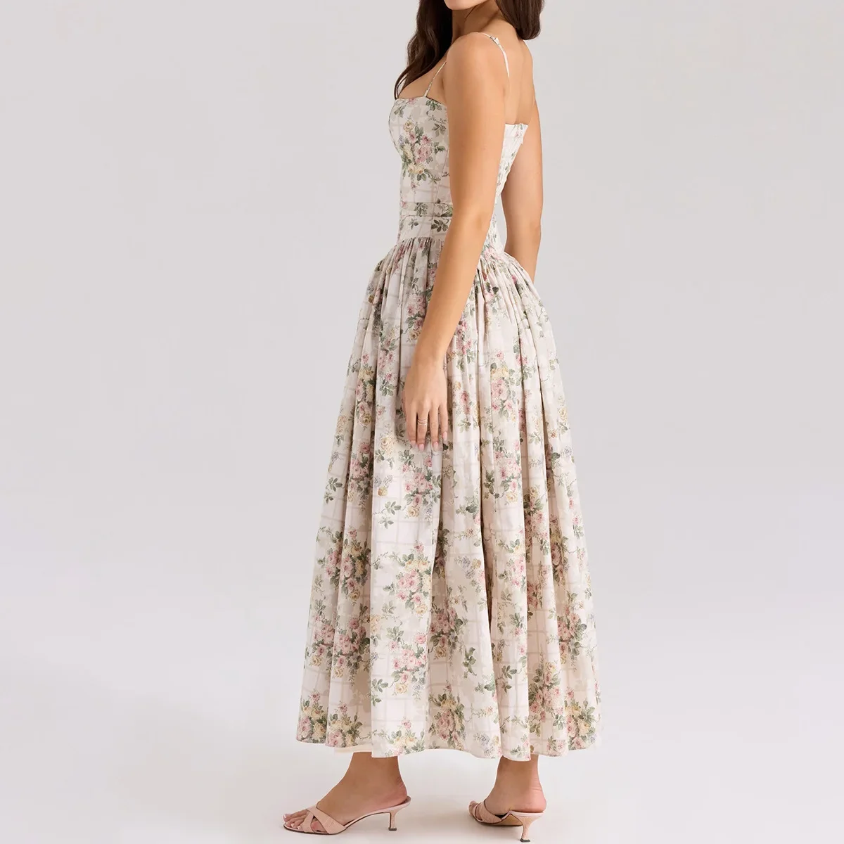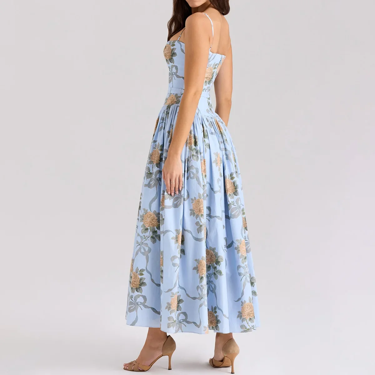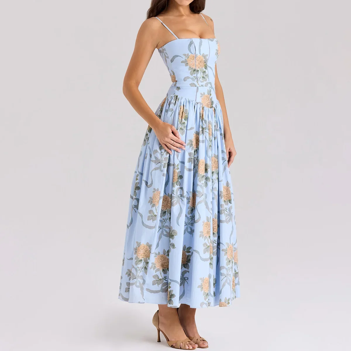 Floral Print Elegant Spaghetti Strap Flowy Midi Sundress Summer Boho Beach Dress for Women